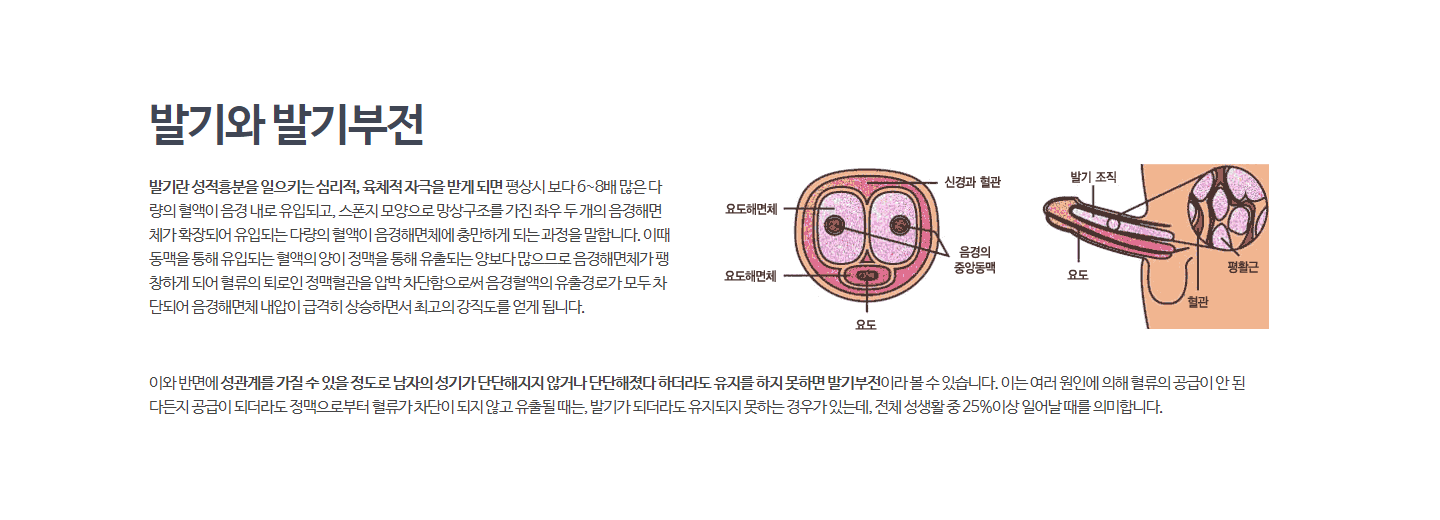 발기부전이란 성관계를 가질수 있을 정고로 남자의 성기가 단단해지지 않거나 유지를 못하는 것을 말합니다.